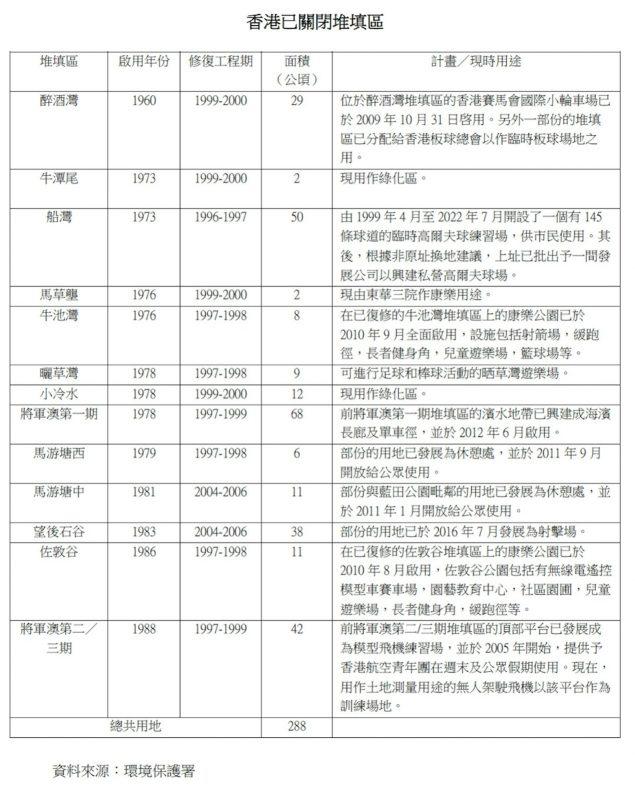 香港都已沒有土地堆填而且土地短缺問題近年一直困擾香港。市民面對「貴」、「細」、「擠」:樓價高、租金貴、上車難;生活空間狹小擠迫、社區設施不足、營商成本高企,香港房屋、經濟,以至各類用地不足的問題,已經成為大眾最關心的其中一個議題。香港樓價太高,政府和社會因為要覓地建房引致社會提出「土地大辯論」,當中的選項包括填海、收棕地農地等土地及收回高爾夫球場等。香港用來堆填的571公頃(當中288公頃已關閉)土地都事實上已經差不多佔了建房所需求的土地量之半,由此可說明堆填除了對環境有害之餘,更是在浪費公共土地資源。
