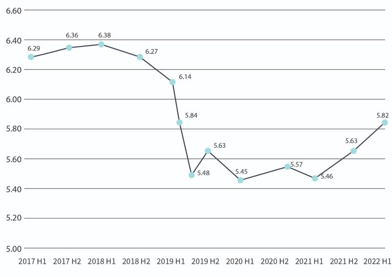 完善選舉制度後的三場選舉順利舉行,顯示香港已經重塑政治秩序。立法會恢復運作,社會對新特首滿有期望。疫情擴散下,不少市民感到失去方向,香港失去發展目標。國家主席習近平表示「一國兩制」必須長期堅持,肯定香港凡獨特優勢,表明中央政府對這個制度行穩致遠非常有信心,釋除很多人對未來的疑惑。因此,從2021年6月起,「一國兩制」指數重拾上升的動力,升至本期的5.82分。