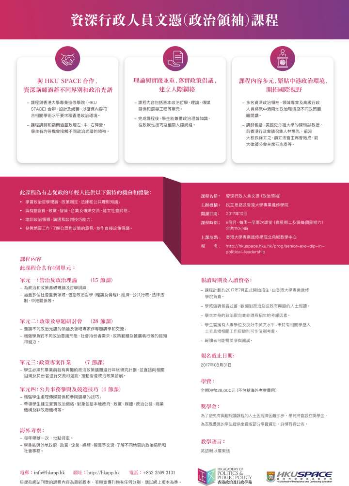 《資深行政人員文憑 (政治領袖課程》正式招生