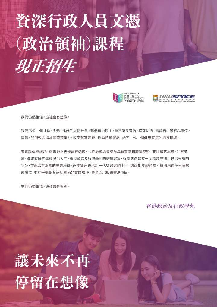 香港政治及行政學苑 《資深行政人員文憑 (政治領袖) 課程》正式招生(Chinese only)